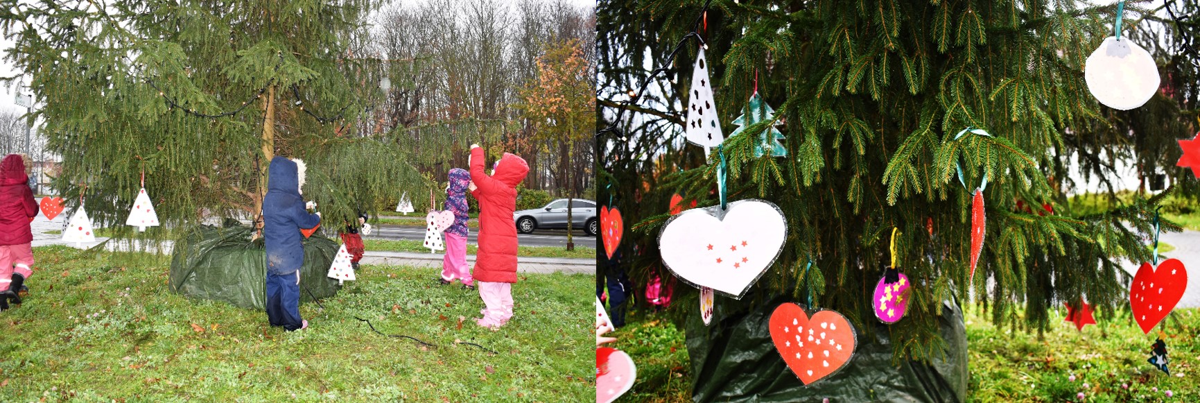 Am Montag nach dem ersten Advent war es endlich soweit und die Kinder der Gruppe 7 haben sich auf den Weg gemacht, um den Weihnachtsbaum mit ihren Bastelarbeiten zu dekorieren. „Ich freue mich schon darauf, meinen Eltern zu zeigen, wie toll wir unseren Weihnachtsbaum geschmückt haben“, verrät ein kleiner Weihnachtswichtel, der mit tief ins Gesicht gezogener Kapuze zum Schutz gegen das kühle Nieselwetter stolz ein rotes Herz um die regennassen Zweige fädelt. Auch in diesem Jahr ist der hübsch geschmückte Weihnachtsbaum wieder ein besonderer Hingucker und ganz gewiss das Ziel von so manchem Familienspaziergang.
