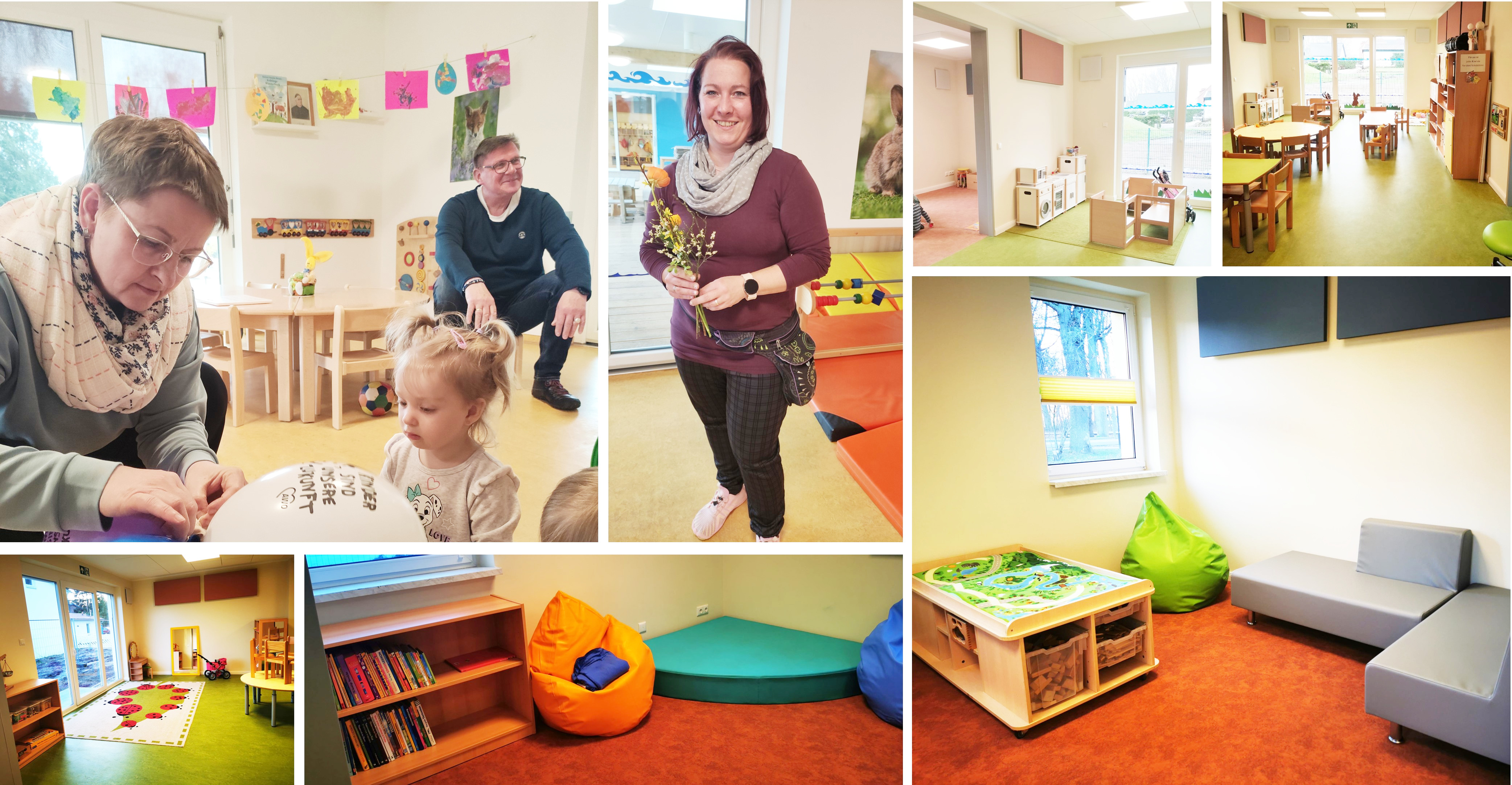 Am vergangenen Dienstag besuchte Dr. Catrin Dohse (Geschäftsführerin der AWO Soziale Dienste Vorpommern gGmbH) gemeinsam mit Dorita Schulz (Bereichsleiterin Kita) und dem Klausdorfer Bürgermeister Thomas Reichenbach die umgebaute und modernisierte Einrichtung. Dabei wurde das Team der Kita mit Blumen und die Kinder mit kleinen Geschenktütchen überrascht.