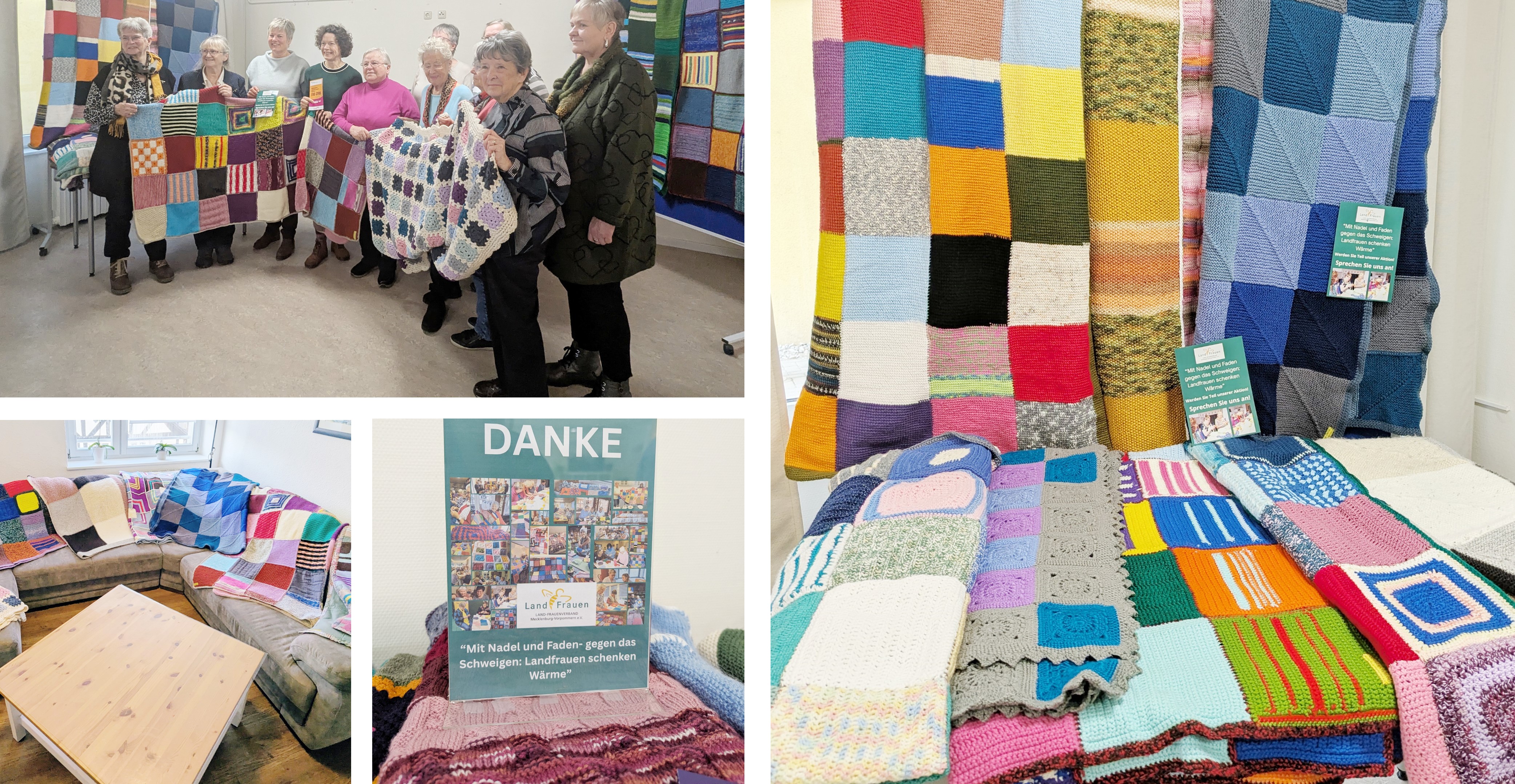 „Mit Nadel und Faden – gegen das Schweigen: Landfrauen schenken Wärme“ unter diesem Motto überreichten die Landfrauen den Frauenschutzhäusern im Landkreis Vorpommern-Rügen etwa 20 selbstgestrickte und gehäkelte Patchwork-Decken. Sie sollen Wärme und Geborgenheit spenden, aber auch ein sichtbares Zeichen der Verbundenheit sein. Die Decken wurden den Einrichtungen am 25. Februar im Rahmen einer gemütlichen Gesprächsrunde übergeben. Bei Kaffee und Kuchen haben sich Vertreterinnen der Frauenschutzhäuser, mit dabei auch die Leiterin unseres Frauenschutzhauses in Ribnitz-Damgarten, gemeinsam mit der Gleichstellungsbeauftragten des Landkreises, Dr. Christine Braun, und dem Landfrauenverein Grimmen über ihre Arbeit ausgetauscht.