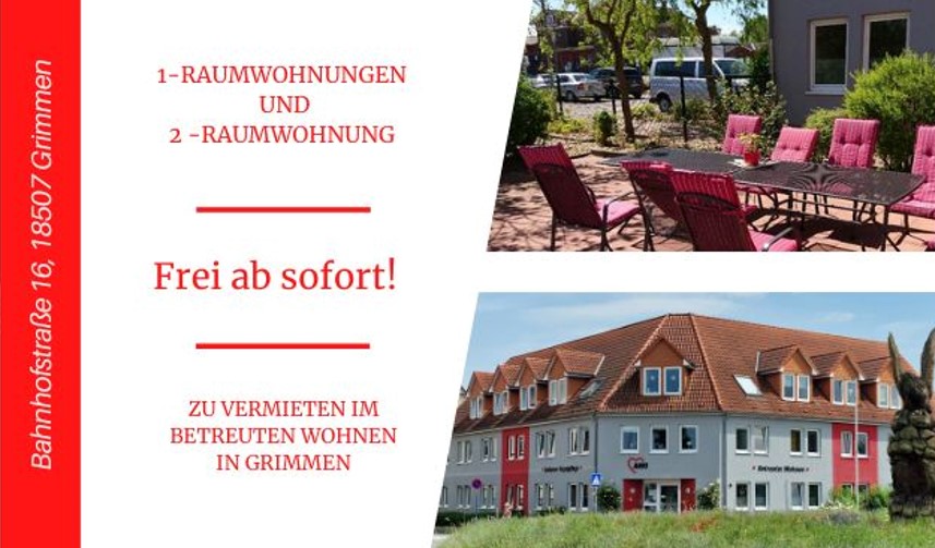 Frei ab sofort: Wohnungen in unserem Betreuten Wohnen in Grimmen