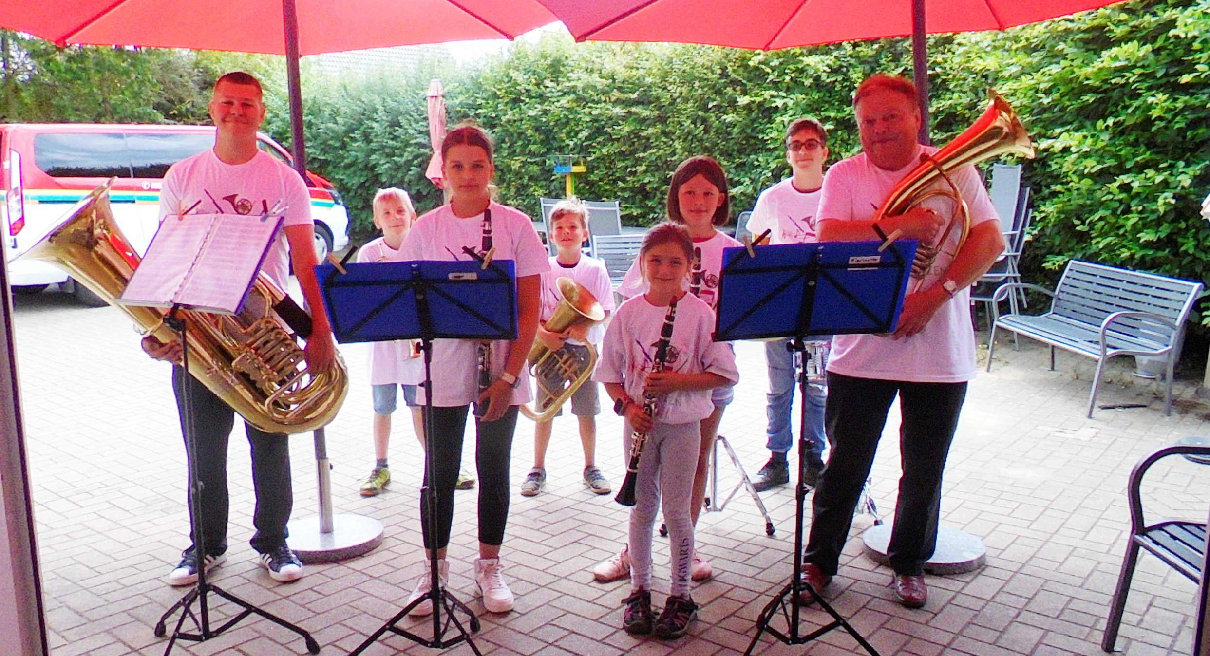 Bei nicht ganz so sommerlichem Wetter feierte unsere Senioren – Tagespflege Tribsees am 05. Juli ihr jährliches Sommerfest. Dieses Jahr mit musikalischer Begleitung durch die Kita „Trebelforscher“. Mit vielen Kinderliedern und dem musikalischen Märchen von „Dornröschen“ brachten die Kitakinder unsere Senioren am Vormittag gleich mehrfach zum Schmunzeln. Für das schöne Programm gab es einen kräftigen Applaus. Wenn es draußen schon regnete, so strahlten aber drinnen die Gesichter der Kitakinder und die unserer Tagesgäste. Auch am Nachmittag freuten sich die Tagesgäste über den Auftritt „Trebelspatzen“. Die Jugendfeuerwehrkapelle Tribsees überraschte die Senioren mit vielen bekannten Liedern und sorgte für eine ausgelassene Stimmung. Anschließend setzten sich die Kinder und Jugendlichen gemeinsam mit unseren Tagesgästen an eine gemütliche Kaffeetafel.