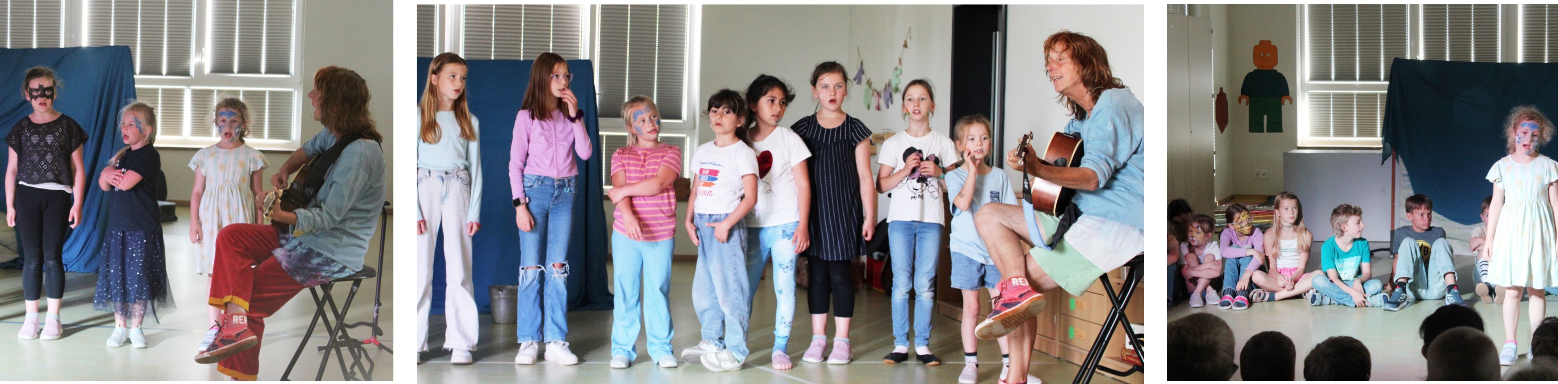 In der zweiten Ferienwoche besuchte Annette Glaschick vom „MusikTheater Meerwunder“ unsere Stralsunder Kita Spielkiste. Mit großem Engagement studierte sie mit ca. zwanzig Kindern verschiedene kindgerechte Lieder und Choreografien zum Thema Umweltschutz ein. Das Theaterstück beschäftigte sich mit verschiedenen Tieren an Land, im Wasser und in der Luft. Krabbe Krabix, Lachmöwe Laila und einige kleine Füchse führten das Publikum durch das Programm. Der Höhepunkt des Projektes war die Aufführung des Theaterstückes mit dem Titel „Die Zukunft – das sind WIR“ am Freitag in unserer Kita. Die kleinen „Darsteller“ erhielten viel Applaus von unseren Kindern und ErzieherInnen. Richtig stolz auf ihr Programm und mit einem zufriedenen Lächeln im Gesicht ging für die kleinen Künstler eine spannende Projektwoche zu Ende.