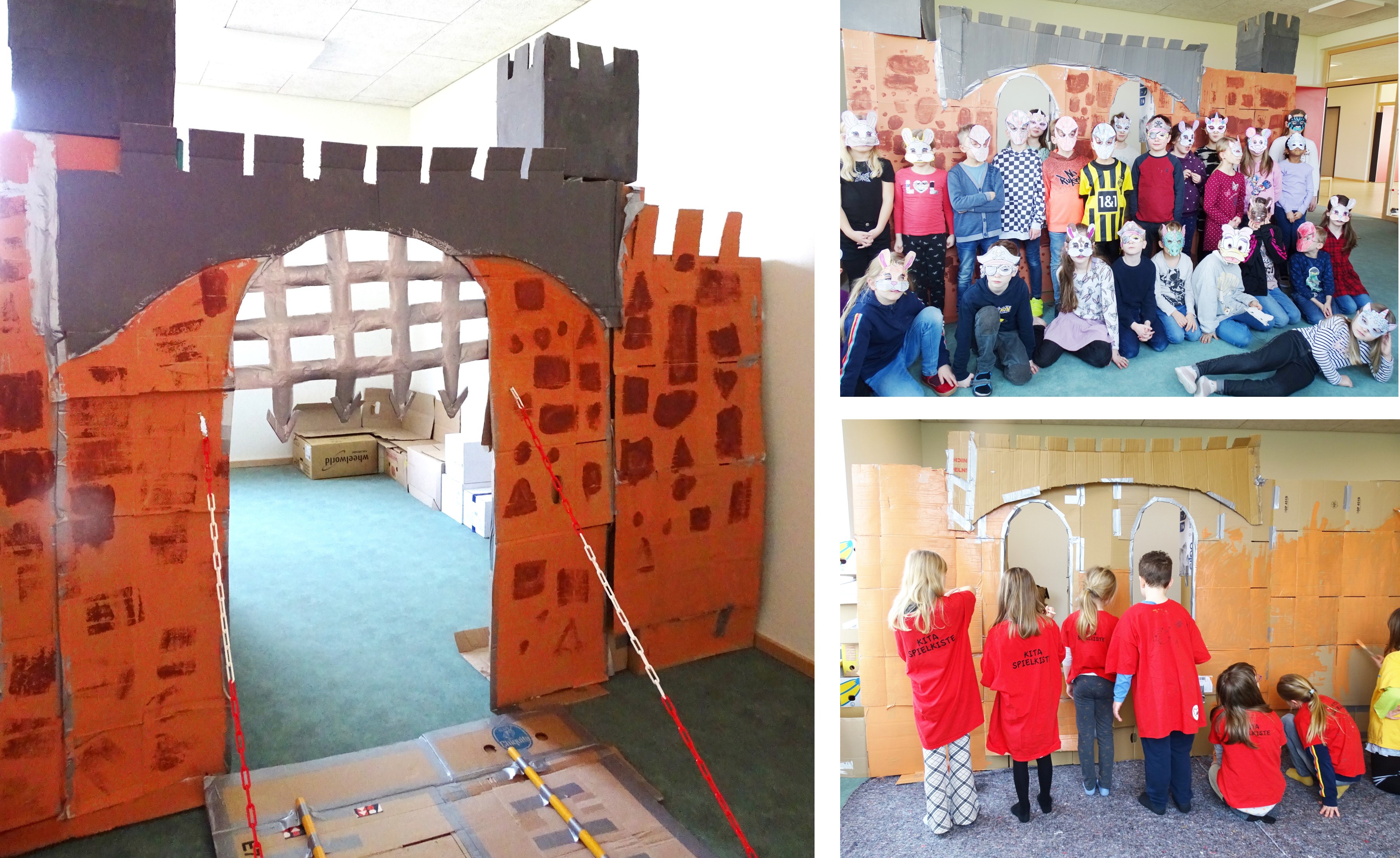 In unserer Stralsunder Kita "Spielkiste" bauten die Hortkinder im Rahmen ihres Ferienprojektes ein begehbares Disneyschloss mit funktionierender Zugbrücke.