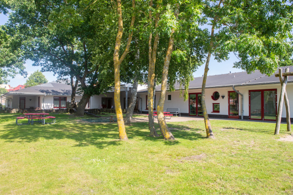 Unsere Einrichtung ist eine Stätte des Lernens, der Freude, des Entdeckens und des Kindseins. Der lichtdurchflutete Mehrzweckraum bietet viele Möglichkeiten für unterschiedliche Aktivitäten mit Kindern und Eltern. Das großzügige grüne Außenspielgelände mit altem Baumbestand bietet den Kindern viel Platz für Sport und Spiel.